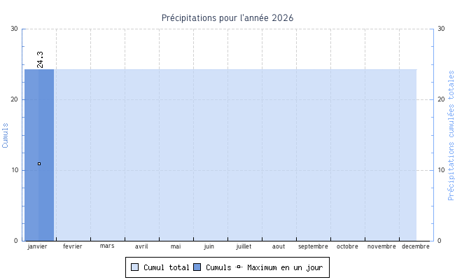 | Total | -6.6 °C | 0.8 °C | 13.8 °C | 7.9 °C | 4.2 °C | 7 km/h | 65.5 km/h | SSO |